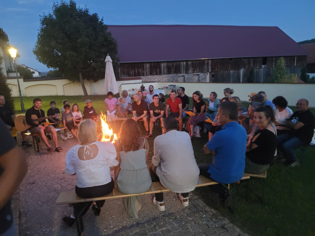 Im Anschluss konnten es sich alle Anwesenden bei Kaffee & Kuchen und Gegrilltem gut gehen lassen. Die Gitarrengruppe Poppenricht untermalte mit fröhlicher Musik die Feststimmung auf dem Kirchengelände. Die alkoholfreien Cocktails, die von Konfis und Mitarbeitenden der Jugend angeboten und zubereitet wurden, waren schnell unter die Leute gebracht. Und auch die Kinder konnten sich beim Kinderschminken, Bastel- und verschiedenen Spielangeboten austoben. Eine Abendandacht bei Lagerfeuer und Stockbrot rundete den gelungenen Festnachmittag ab. Nur dank vieler tatkräftiger Mitarbeitender konnte das Gemeindefest in Planung und Umsetzung gestaltet werden.